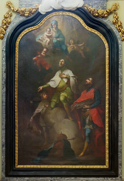 Szent Józsefet ábrázolja ölében az áldást osztó kis Jézussal. Szent József a kép középtengelyében, lépcsőn áll. A lépcsőfokokon két puttó ül, egyikük kezében liliomot tart, és a középső csoportra mutat. Fölöttük felhők között angyalok láthatók.